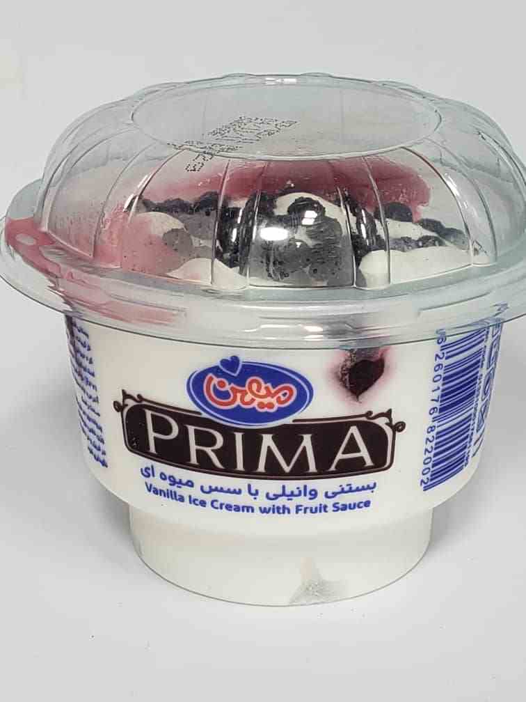 بستنی پذیرایی وانیلی با سس میوه ای میهن