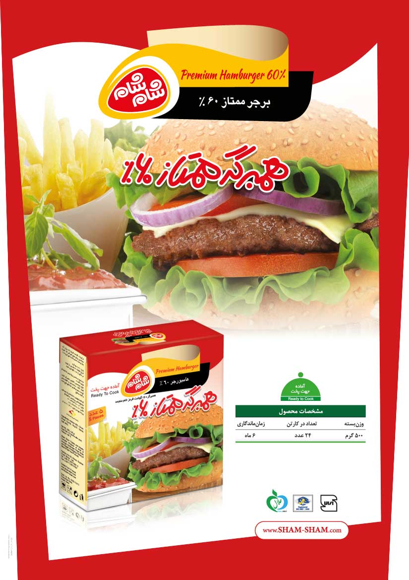 همبرگر ممتاز 60% گوشت شام شام 500 گرمی